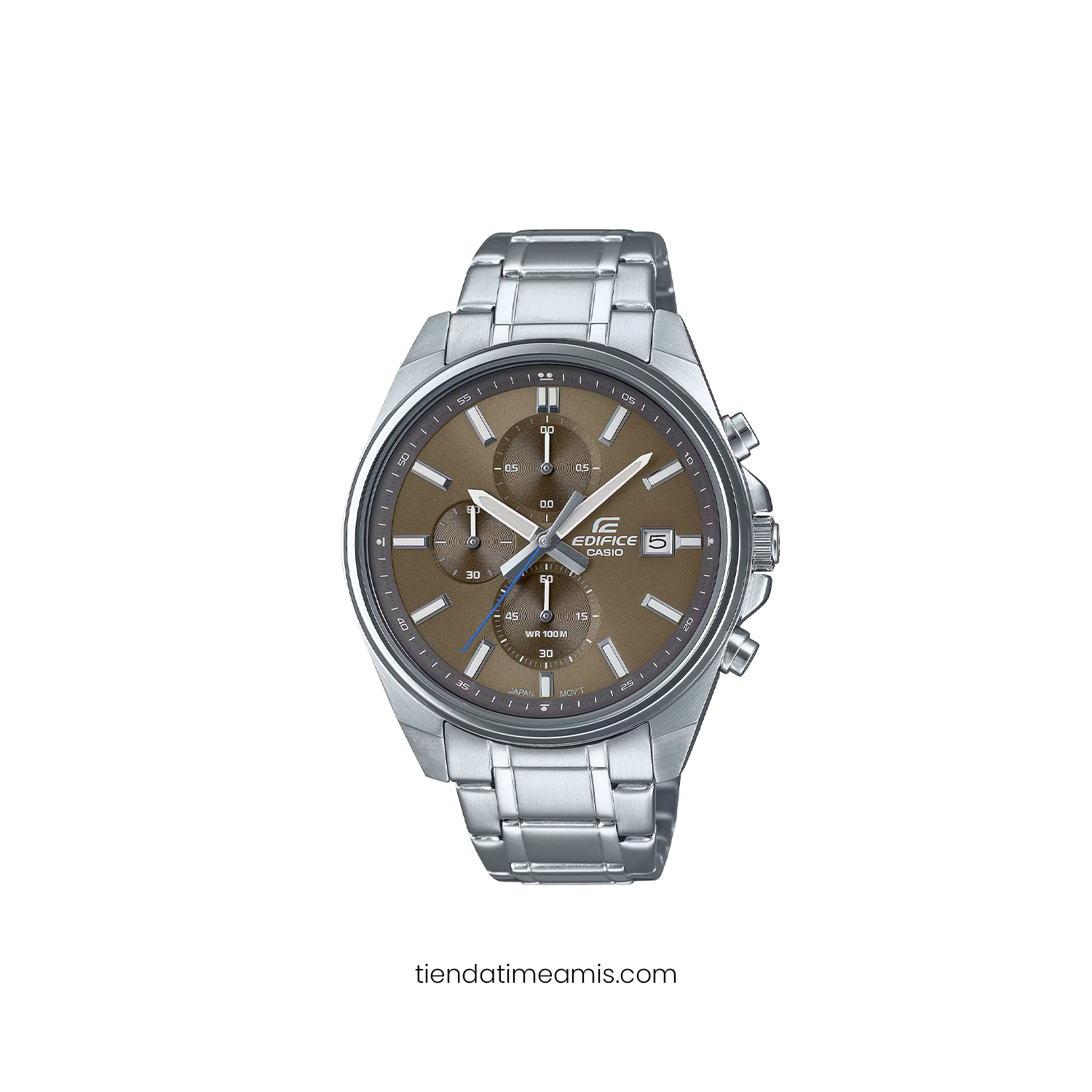 Cronógrafo de estética urbana con esfera marrón que aporta un toque distinto sin perder versatilidad. Es una pieza para combinar estilos con personalidad, del look diario al más pulido.