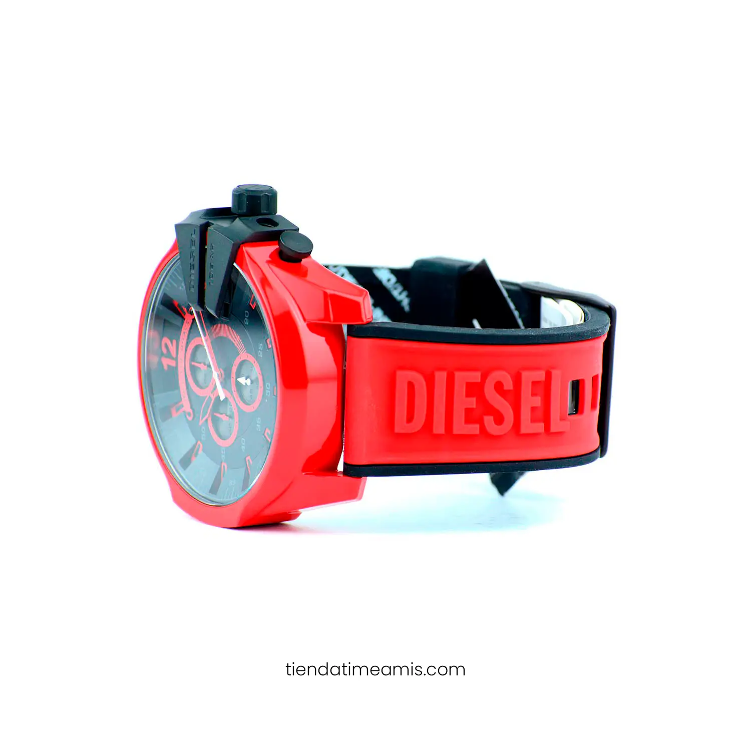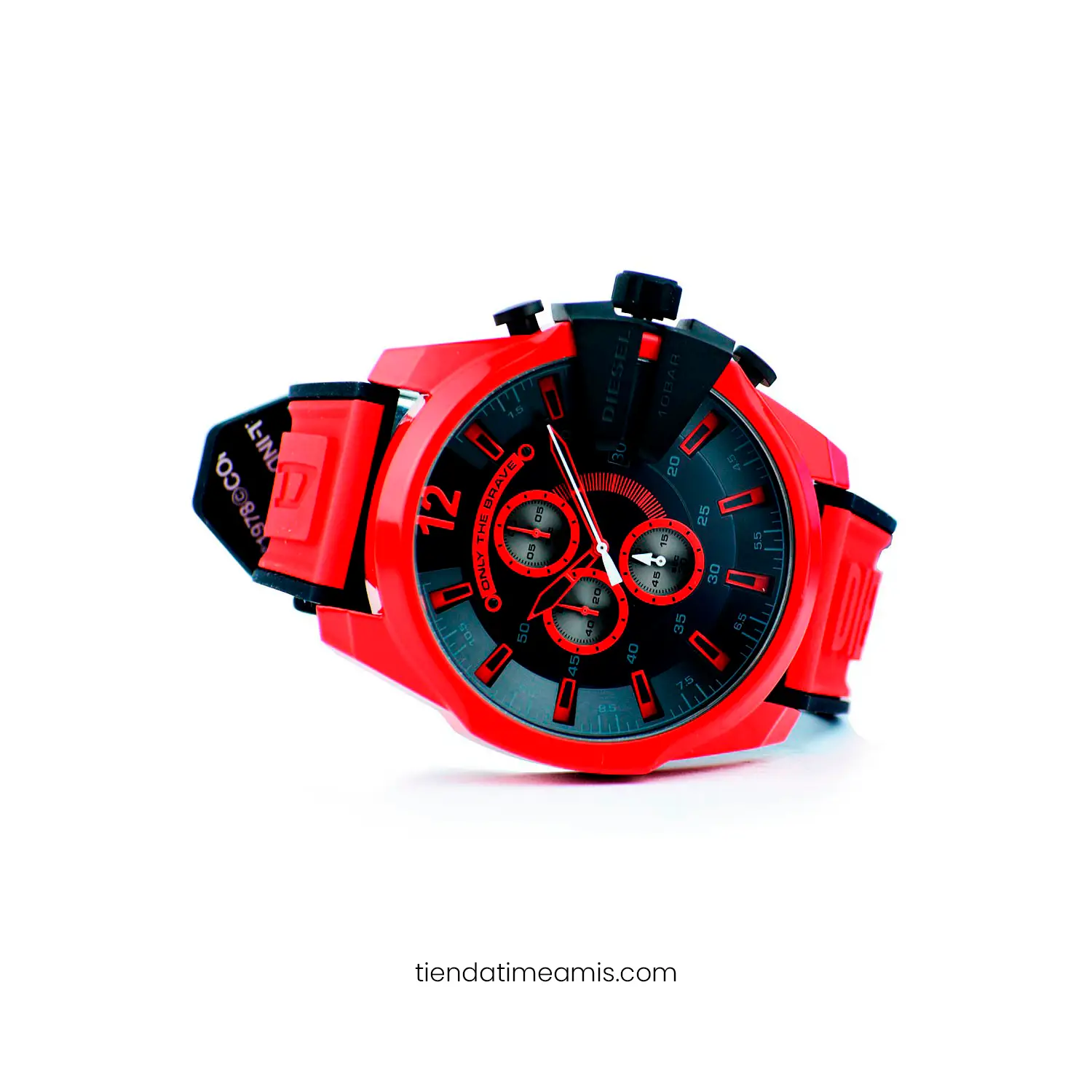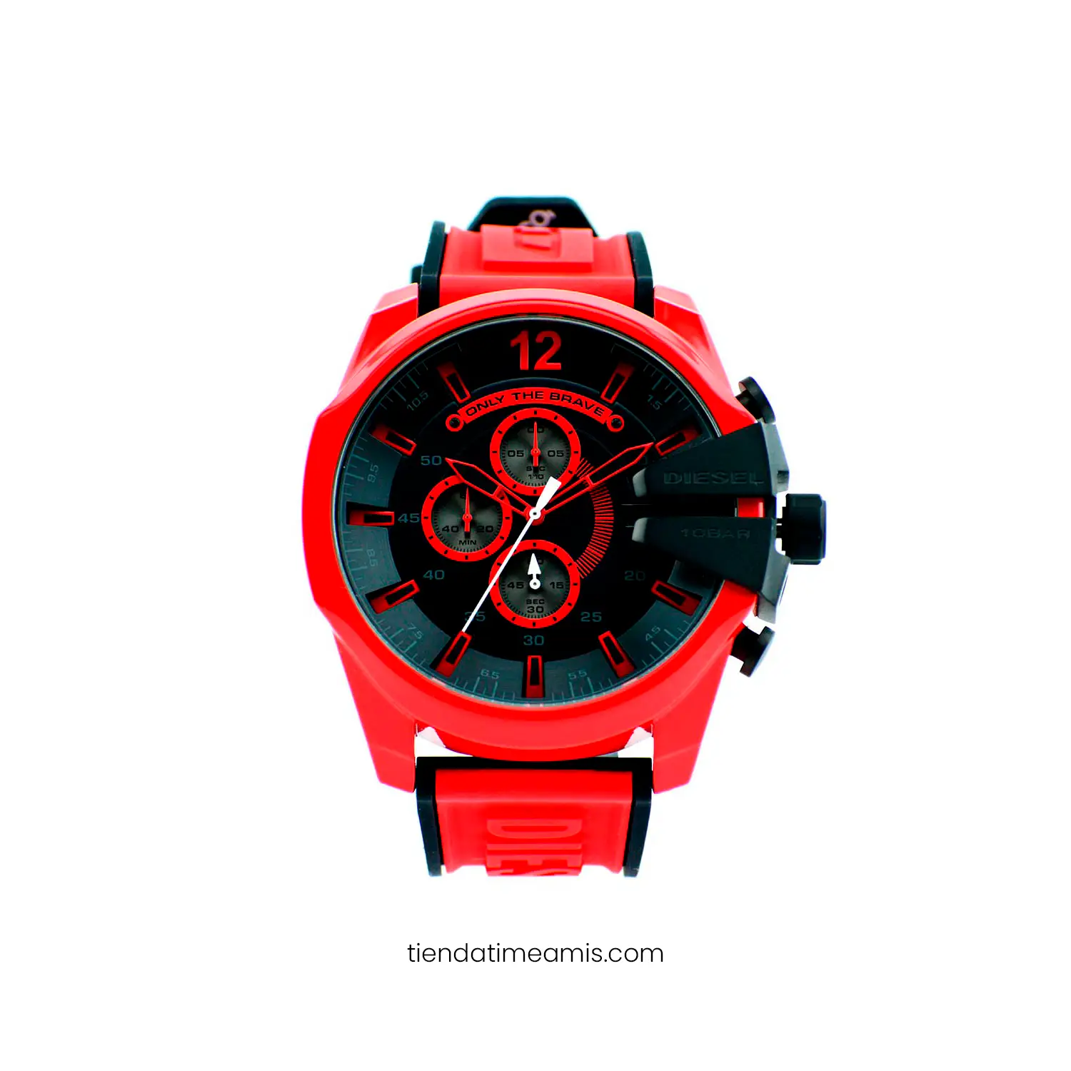 Diesel DZ4526 irradia carácter y tamaño: su caja de 51 mm domina la muñeca, mientras su correa de silicona o goma de 26 mm de ancho aporta intensidad y estilo. Con esfera negra profunda, detalles en rojo y función de cronógrafo, este reloj es ideal para quienes buscan un accesorio que combine lo deportivo, lo casual y lo audaz. Ya sea en traje o en “street style”.