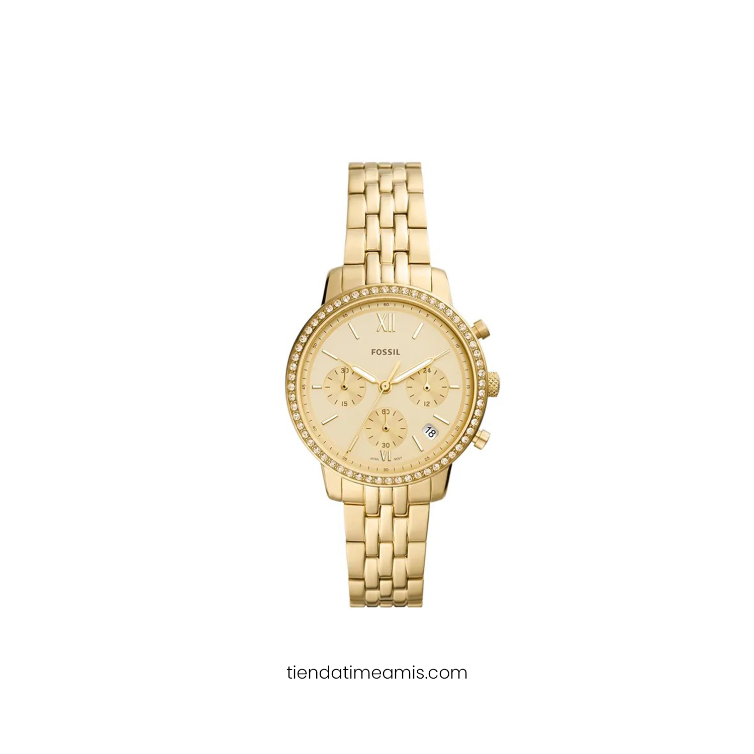 · Material de la caja: Acero inoxidable tono dorado