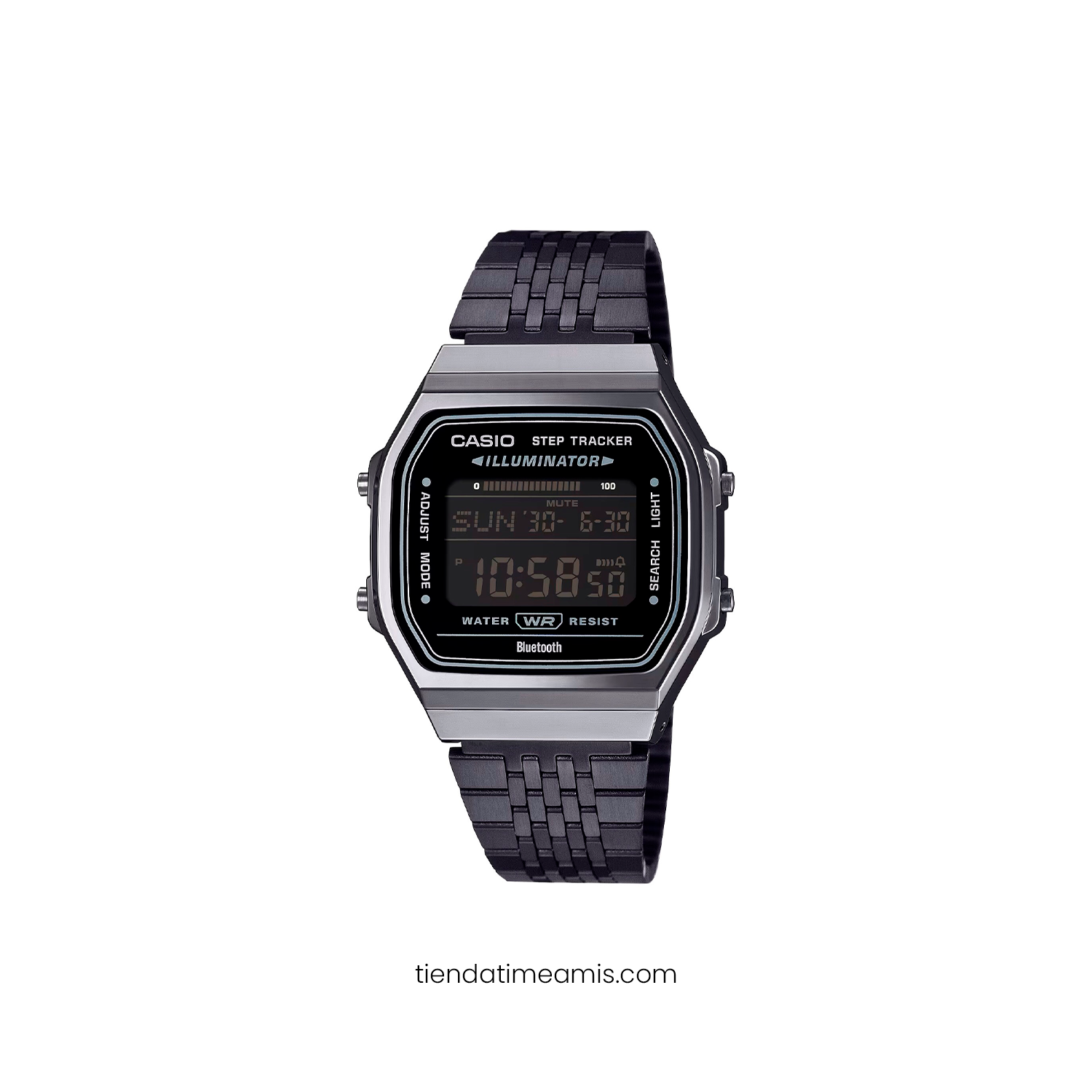 Marca Casio Vintage, reloj digital con diseño retro clásico y funciones modernas de seguimiento de actividad.